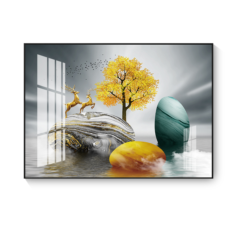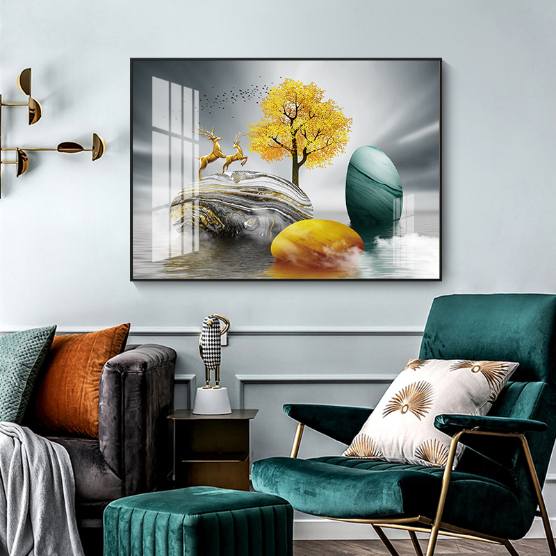 Golden outer frame (art oil canvas) - free to install black outer frame (crystal porcelain crystal picture)) - free of punch mounting with golden outer frame (crystal porcelain crystal picture)) - free of punch