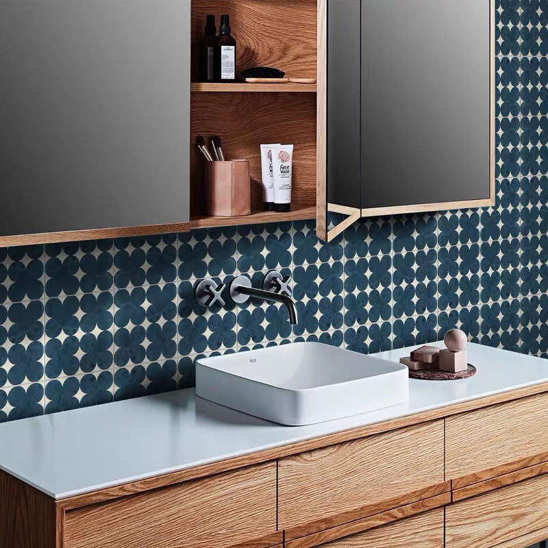 Nordic blue cafe tiles Retro dining room powder room tiles Milk tea shop kitchen bathroom non-slip floor tiles