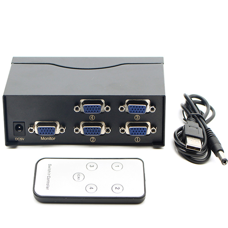 Industrial grade 4-port VGA switcher 4 in 1 out with remote control monitor Host Display Four-in-out VGA Share