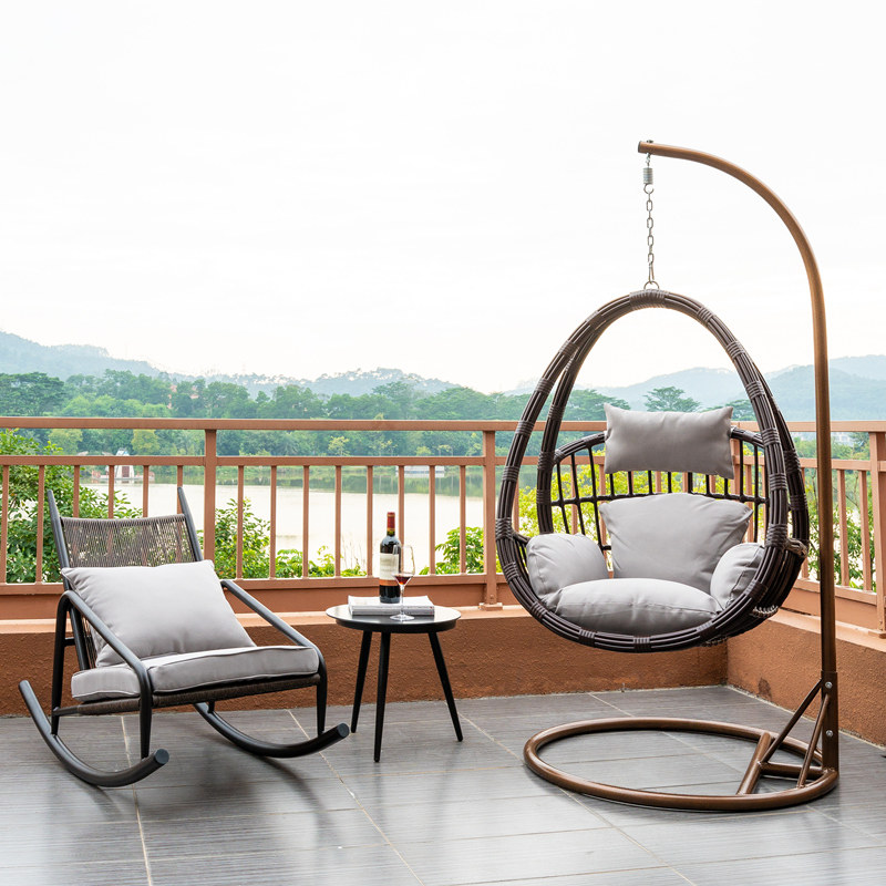 Chair tea table rocking chair Three sets of white hanging chair tea table Leisure chair B section white hanging chair tea table Leisure chair Three sets of white hanging chair tea table rocking chair Three sets of curry hanging chair tea