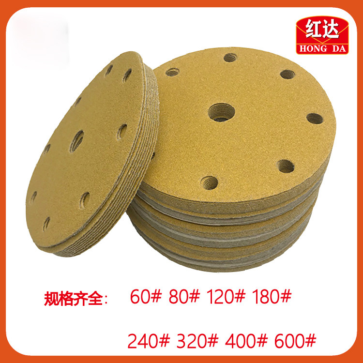 Hongda car 6-inch 9-hole dry sandpaper grinding machine flocking sandpaper grinding round sandy yellow sand 100 sheets