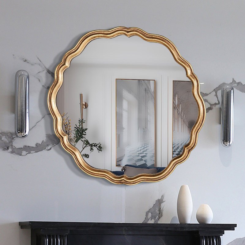 American Decorative Mirror Round Retro Wall-mounted Wall Wall Decoration Mirror Bedroom Wash Table Extravagant Cosmetic Mirror Customisation