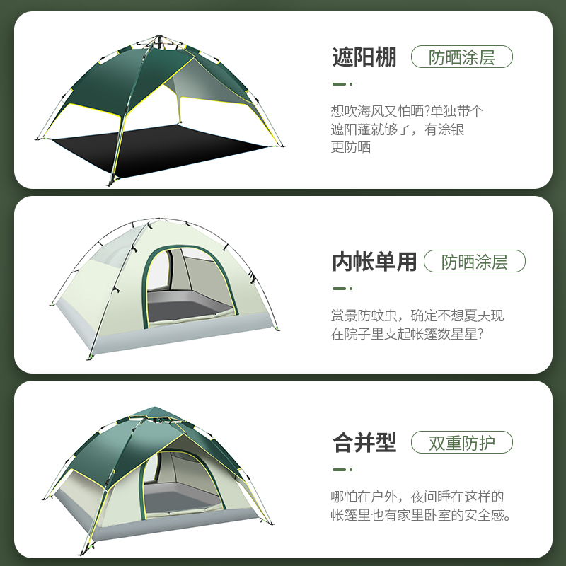 (Classic) 2-3 people (classic) moisture-proof mat (classic) moisture-proof mat picnic mat (classic inflatable bed package) (dark green color double tent) (Rose Red