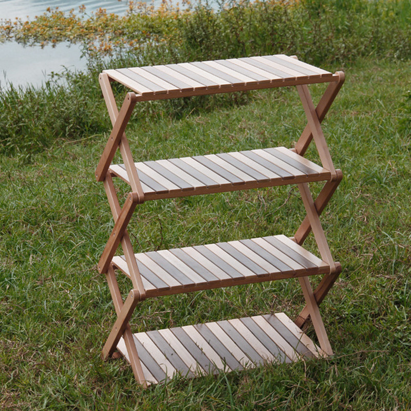 Wild Luxury Tour Portable outdoor camping solid wood multi-layer shelf simple folding four-layer shelf