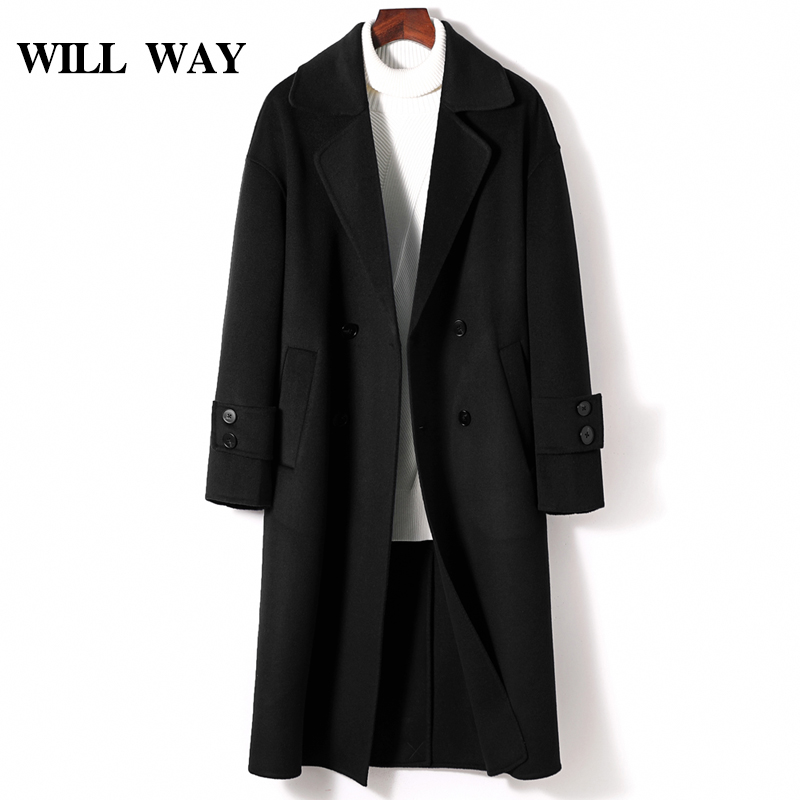 Winter new thickened over-the-knee long cashmere coat men's double-breasted British wind woolen windbreaker woolen coat tide