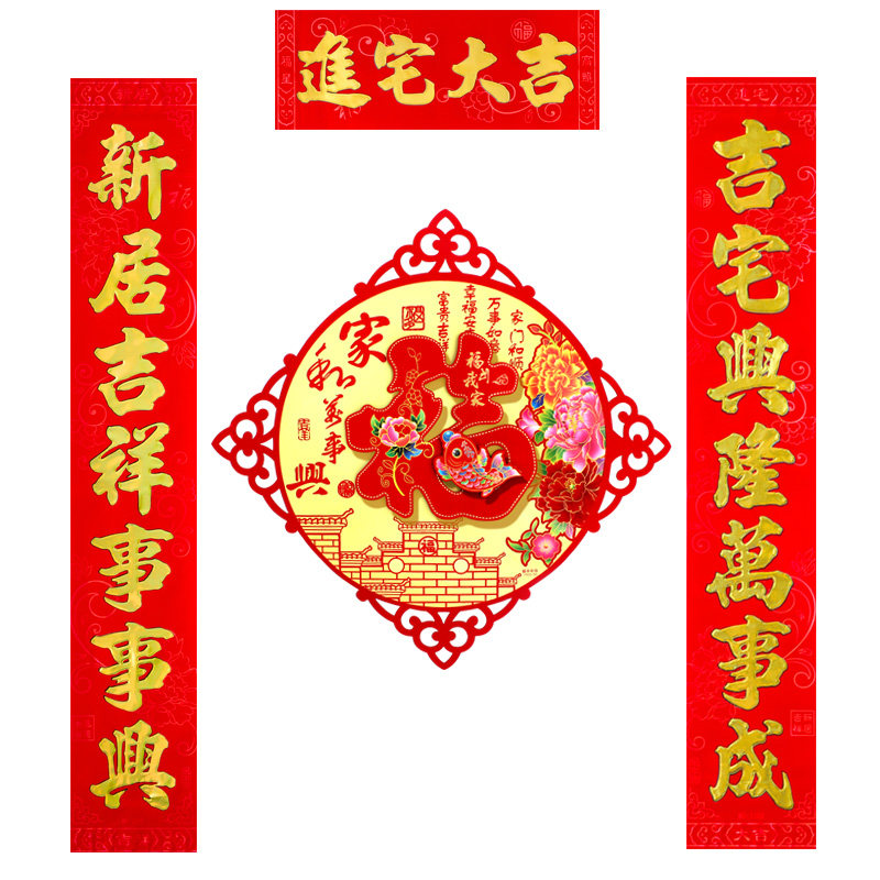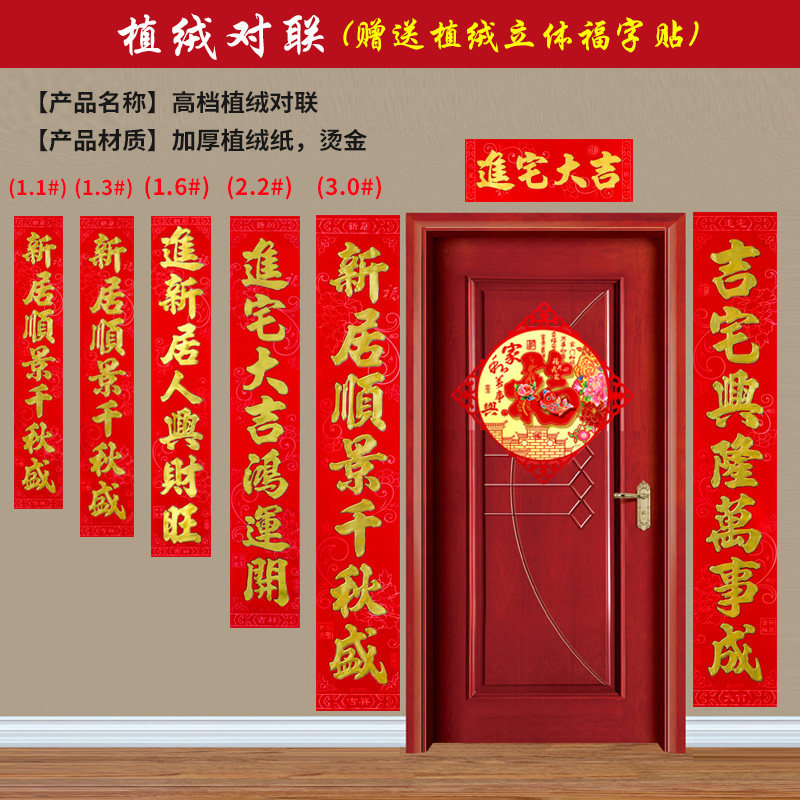 Couplet housewarming joy Flocking door affixed to the house moving into the house New house door door couplet new home decoration supplies
