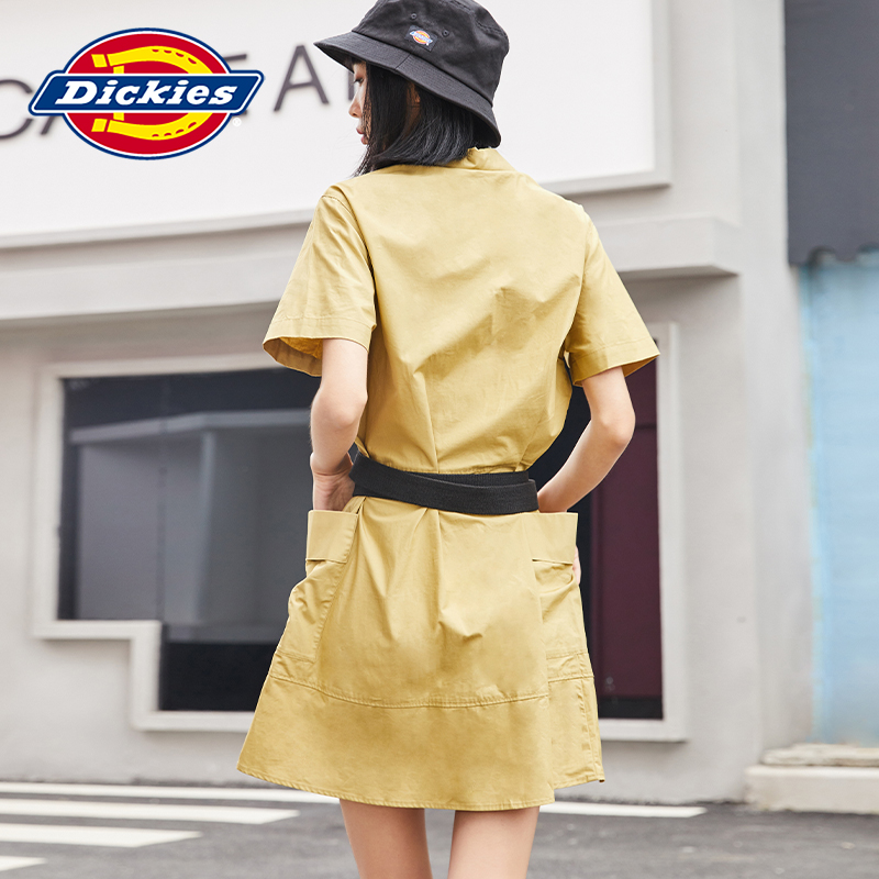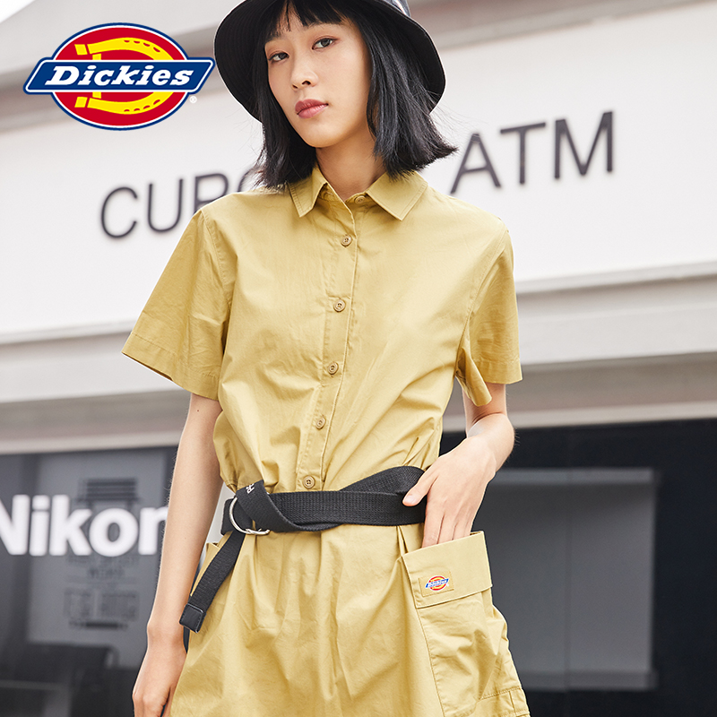 Dickies Card Its Color Pure Color Foreign Dress Women's Summer New Pint Shirt Skirt Long Skirt short sleeve shirt 8802
