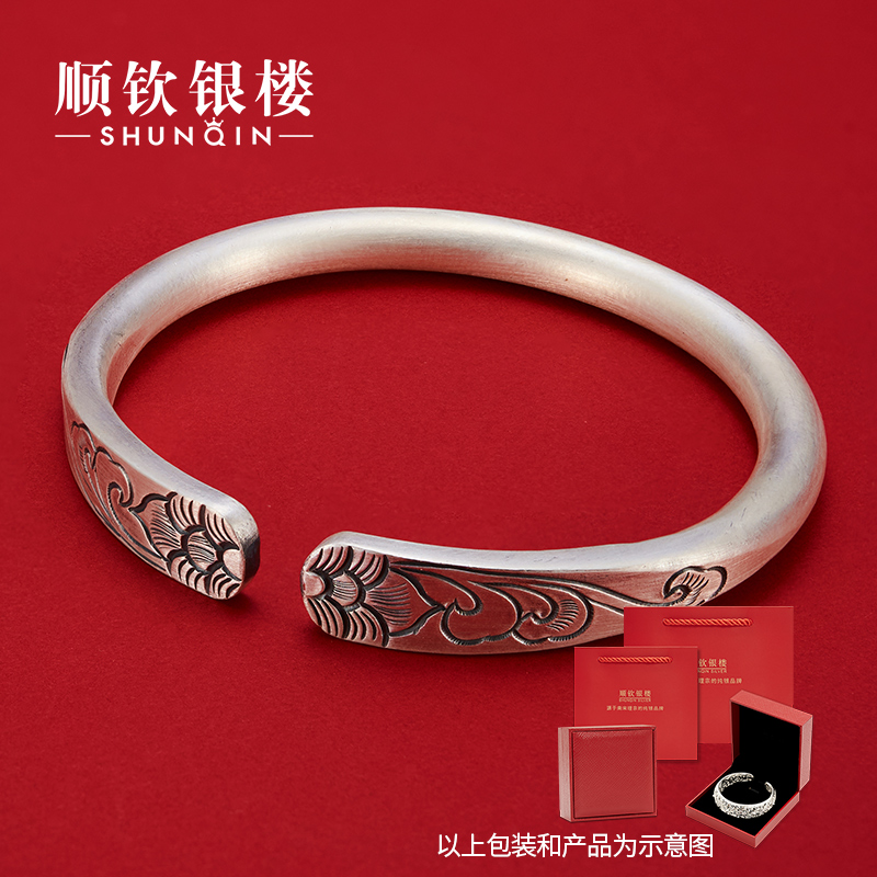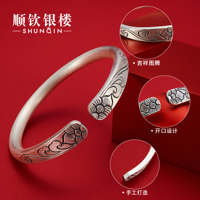 Shunqin silver tower S9999 sterling silver bracelet female auspicious flower national wind foot silver bracelet handmade snowflake silver bracelet