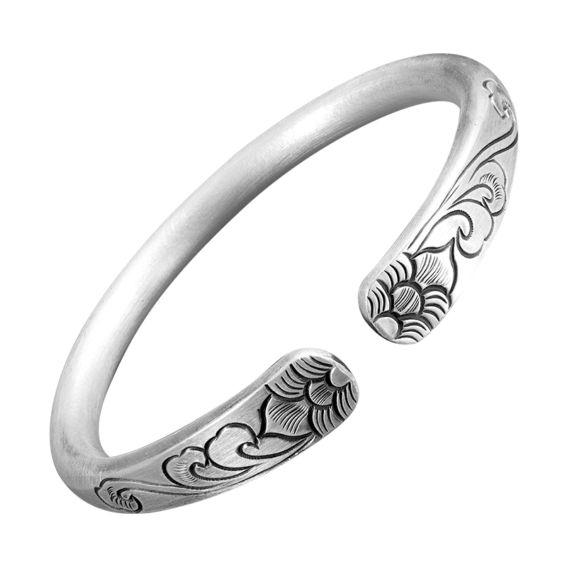 S9999 auspicious flower silver bracelet about 52 grams with certificate S9999 Auspicious flower silver bracelet about 52 grams rose gift box