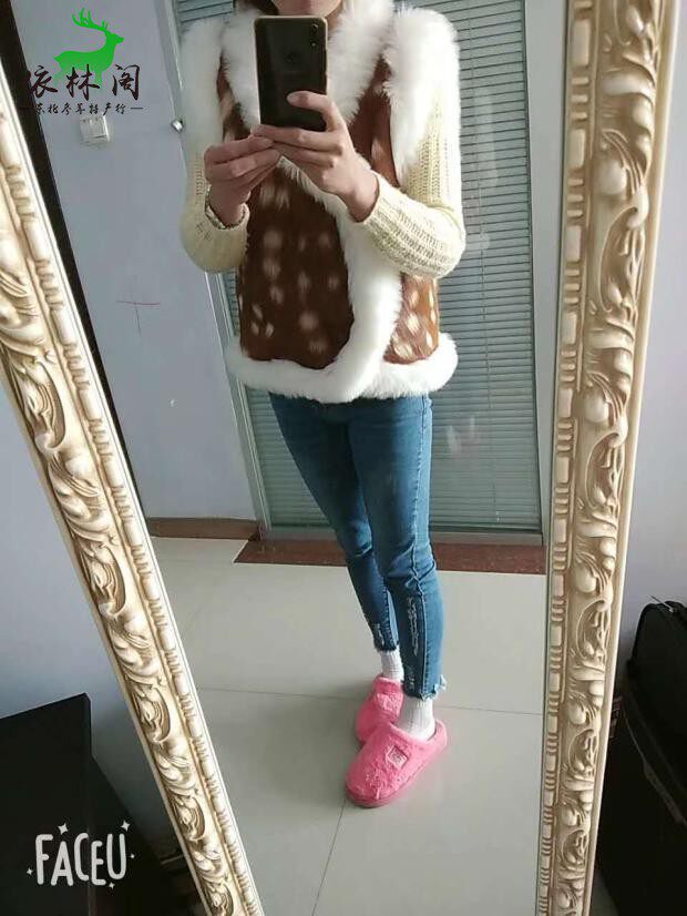 Farmed sika deer leather waistcoat women's leather jacket fur cotton jacket jacket