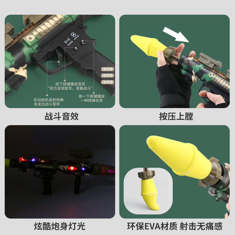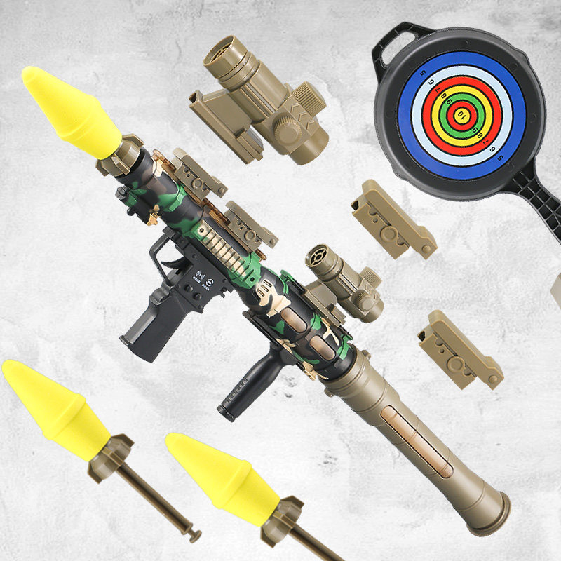 Toy Gun Rpg Rocket Cannon Fired Four Connected Men Kids Eat Chicken Soft Play Gun Emulated Children's Vanguard Snatcher
