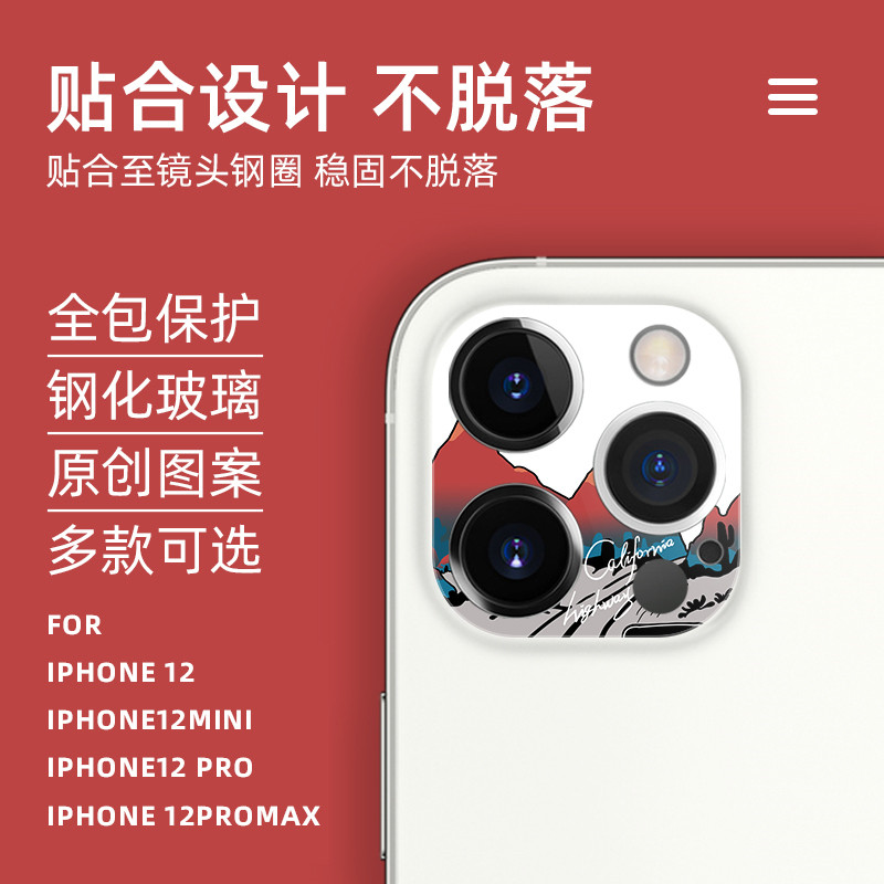 Cartoon Apple 12promax lens film iphone12pro full package protection ring 12mini glass sticker applicable