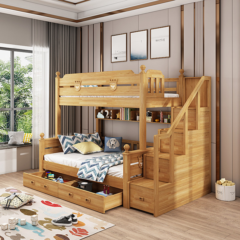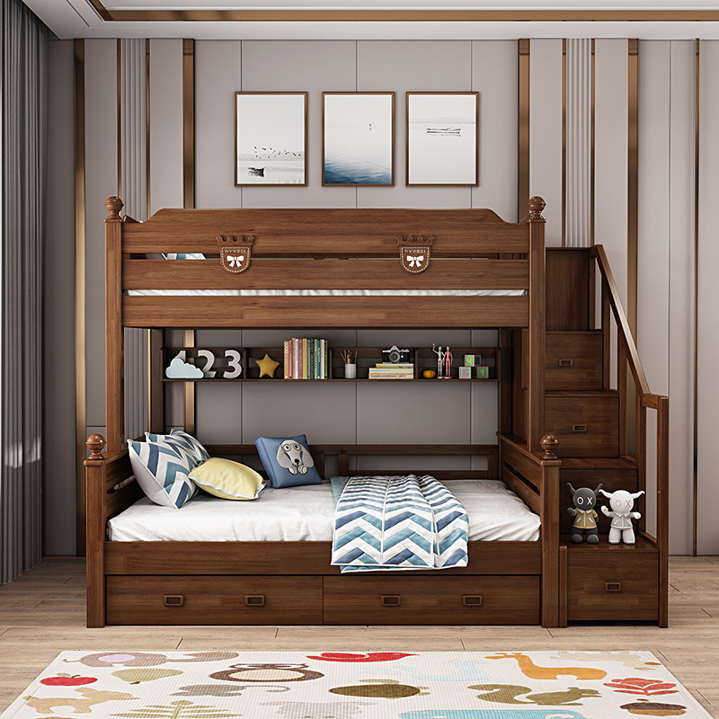 High and low bed (walnut color) high and low bed bookshelf (walnut color) high and low bed drawer (walnut color) high and low bed bookshelf drawer (walnut color) high and low bed bookshelf high box (walnut color) high and low