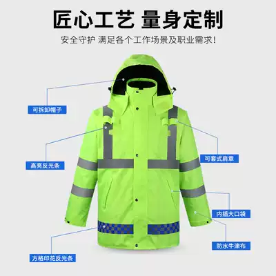 Wei's reflective cotton-padded clothes winter warm traffic Road eye-catching reflective work safety cotton-padded jacket rain clothing coat