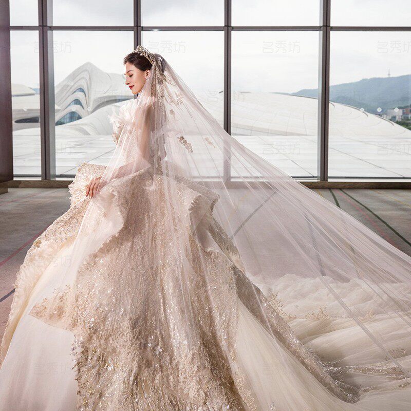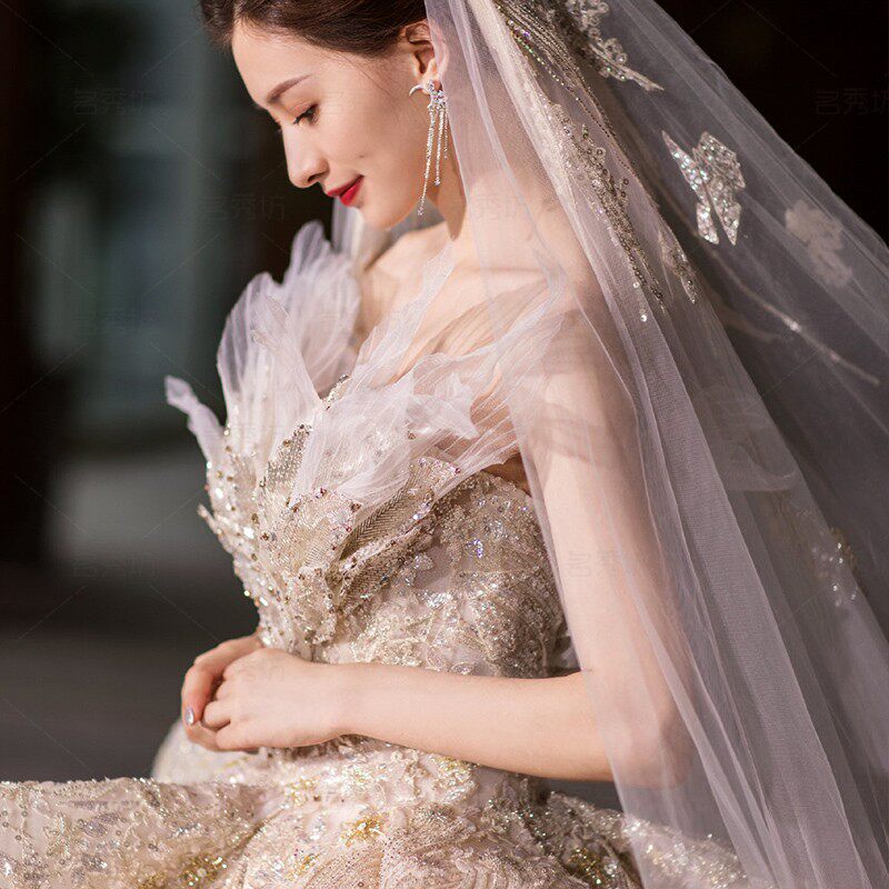 Bride main wedding dress 202021 new big tailing heavy industry Court Net red light French starry girl shoulder