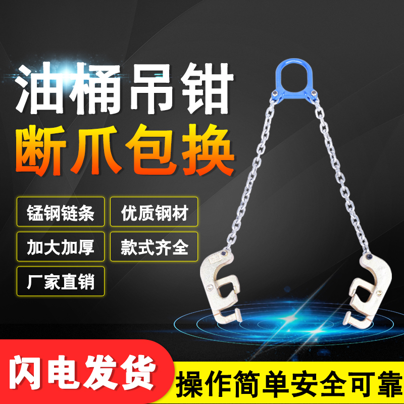 Oil barrel pliers lifting fixture 1T forklift special hook iron barrel clip hook chain hanger barrel clip hook tool