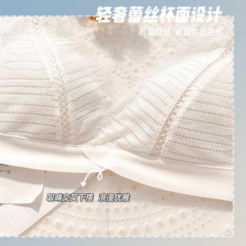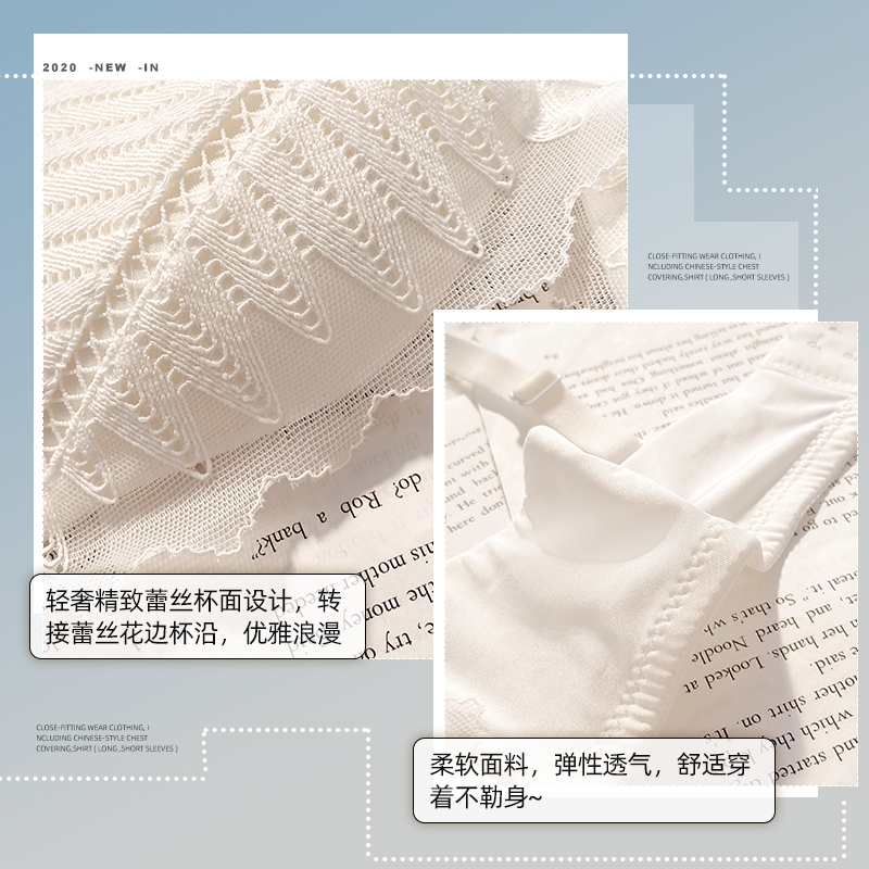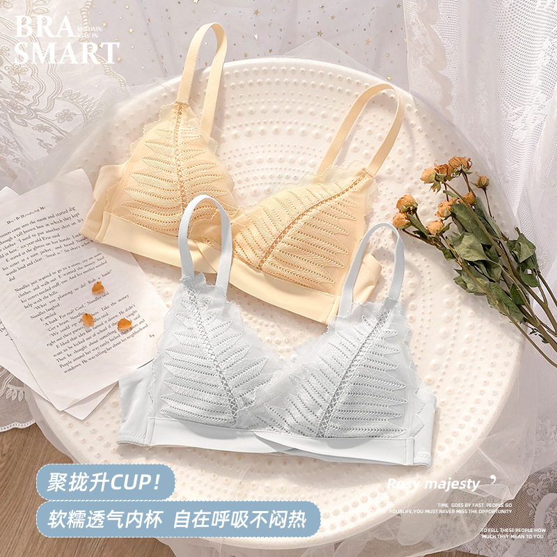 Sexy lace French triangle cup student lingerie women's small breasts gathered in summer thin underwire-less bra set