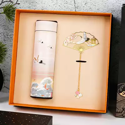 Chinese style retro hollow metal bookmarks gift box set exquisite tassel ancient wind crane printing thermos cup Forbidden City cultural and creative gifts high-grade practical creative opening gift teacher's day to send teachers