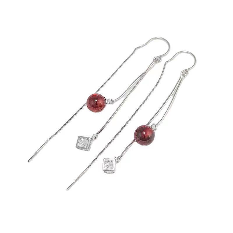 2020 New wave cat eye stone flow Su earrings Magic square red pomegranate stone ear necklace with long version of the New Year's ear accessories