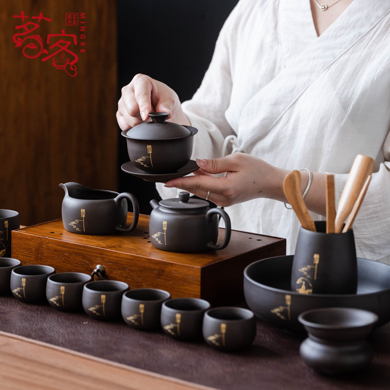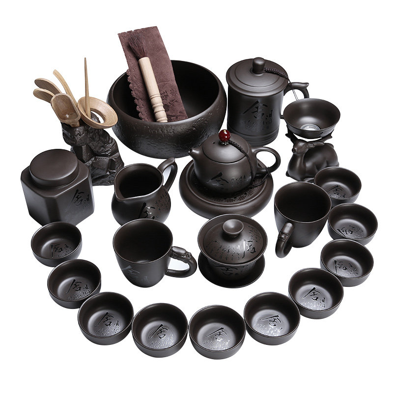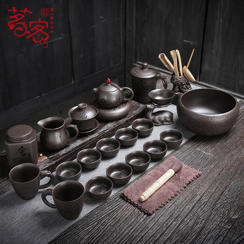 Purple sand kung fu tea set set authentic complete set of senior household cups office reception gift box gift to elders