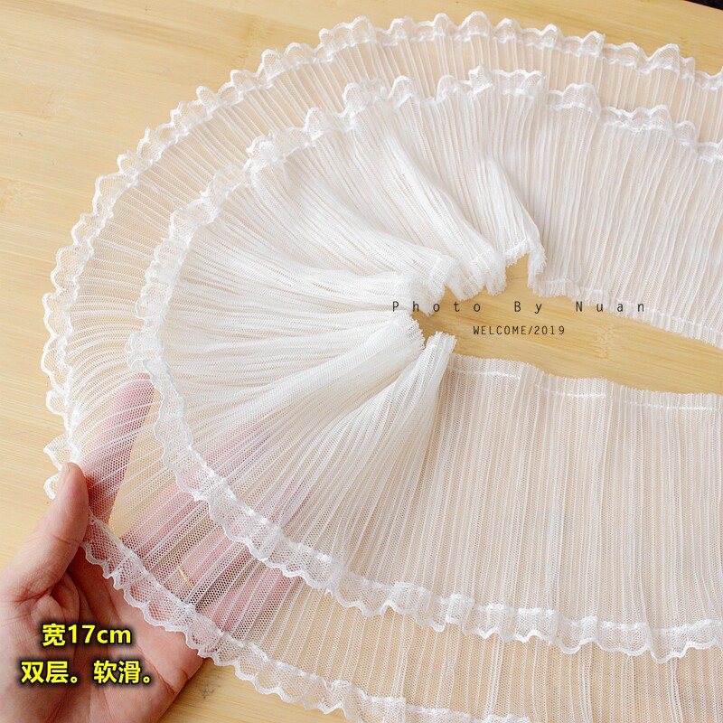 Double layer soft chiffon pleated lace Pleated accordion edge handmade diy sleeves clothing skirt decorative accessories