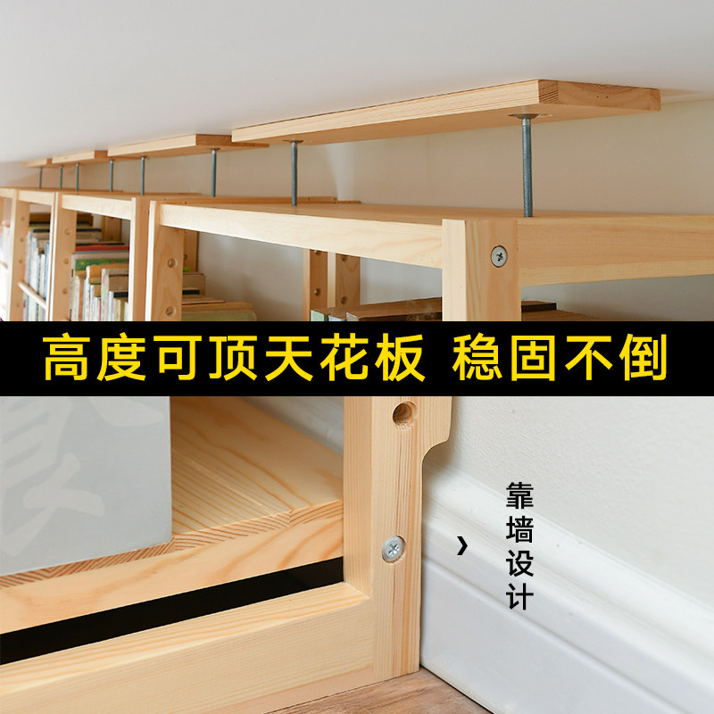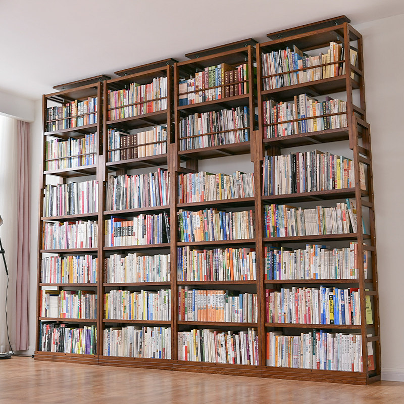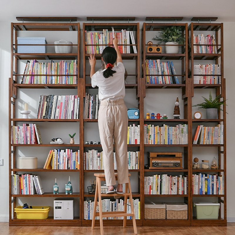 Solid wood book wall type bookcase on floor leaning against wall full wall bookcase Customized shelve for whole wall Top of the living room compartment