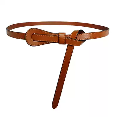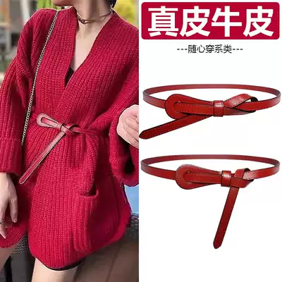 Leather belt female ins with skirt coat decoration belt suit waist girdle Cowhide thin waist seal knotted windbreaker