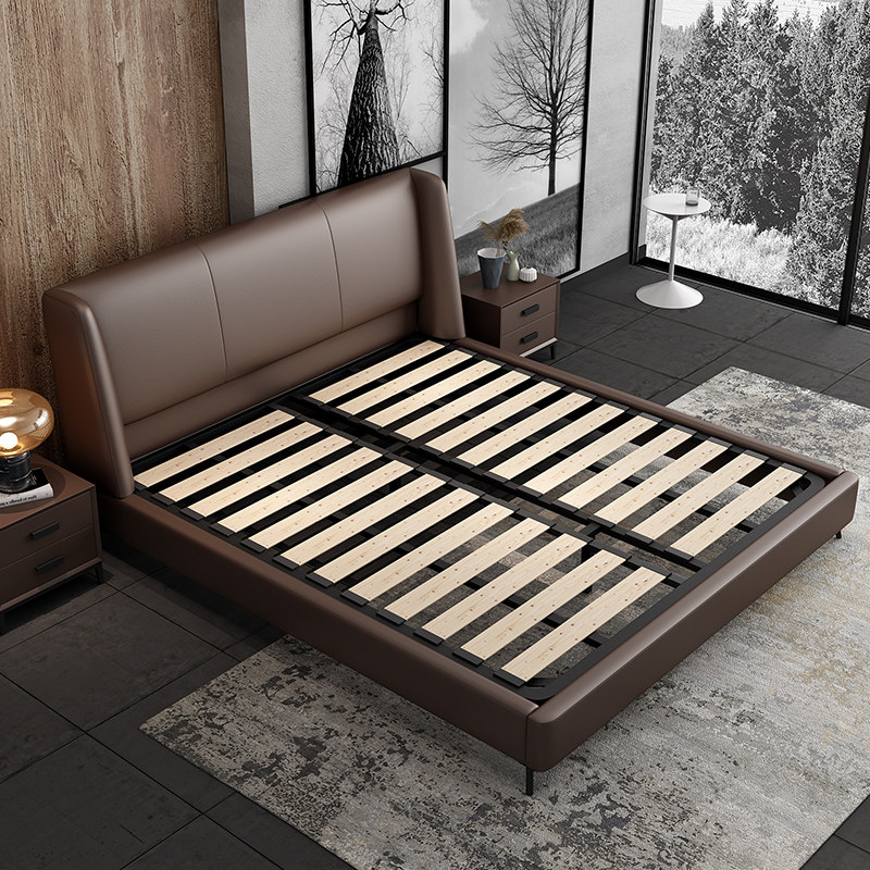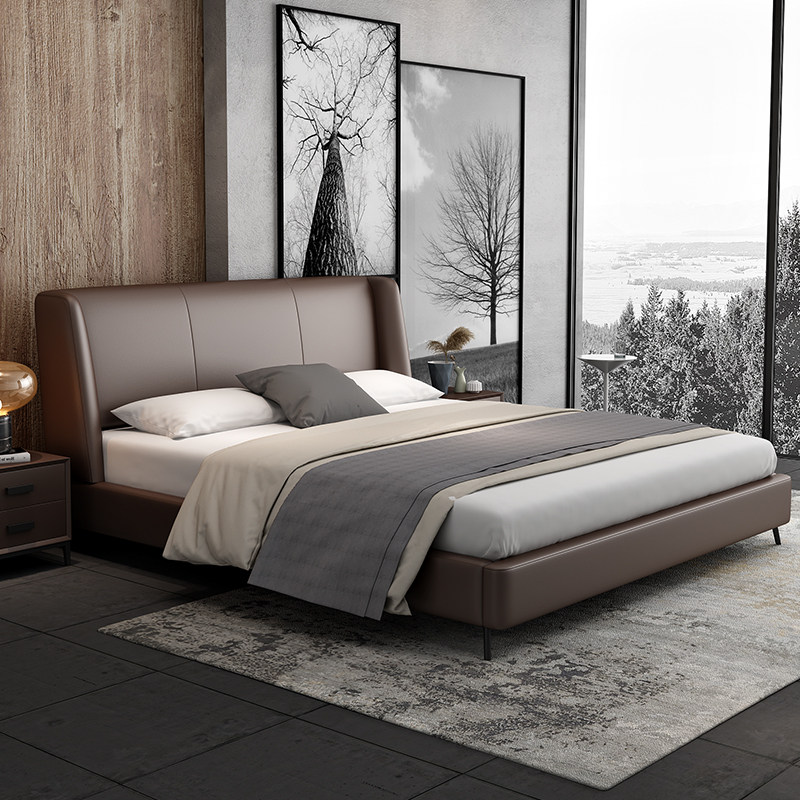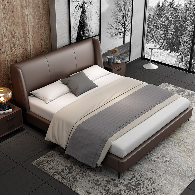Italian light luxury bed minimalist style leather simple wedding bed master bedroom high-end atmosphere double light luxury king bed modern bedroom