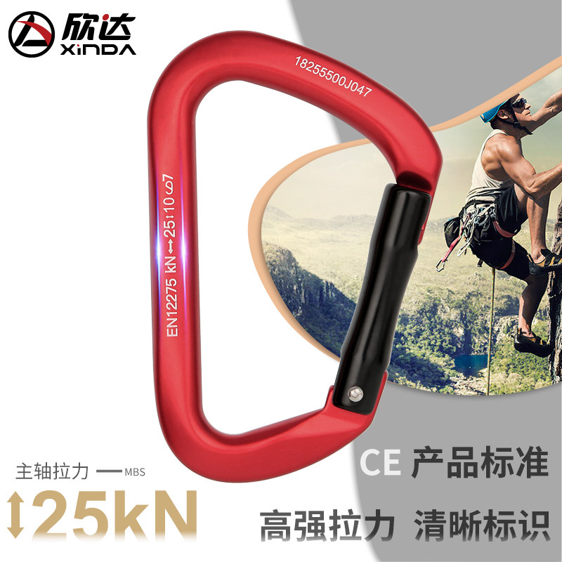 Xinda outdoor mountain climbing fast hanging D-shaped straight door safety buckle speed descent canyoning equipment load-bearing main lock hook