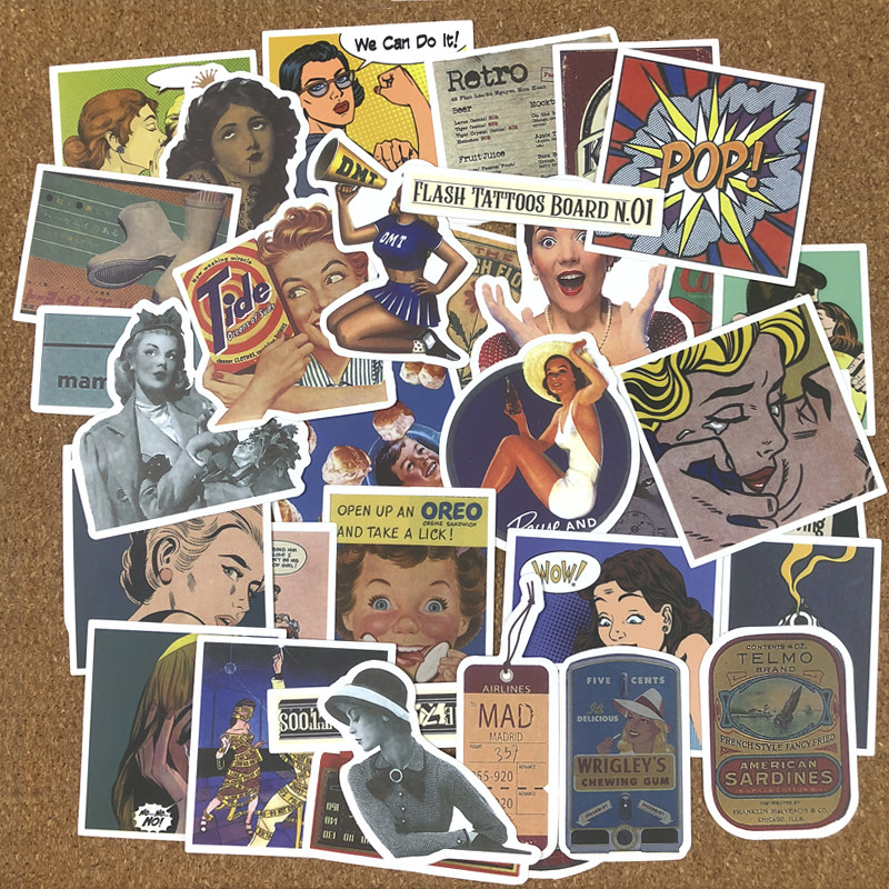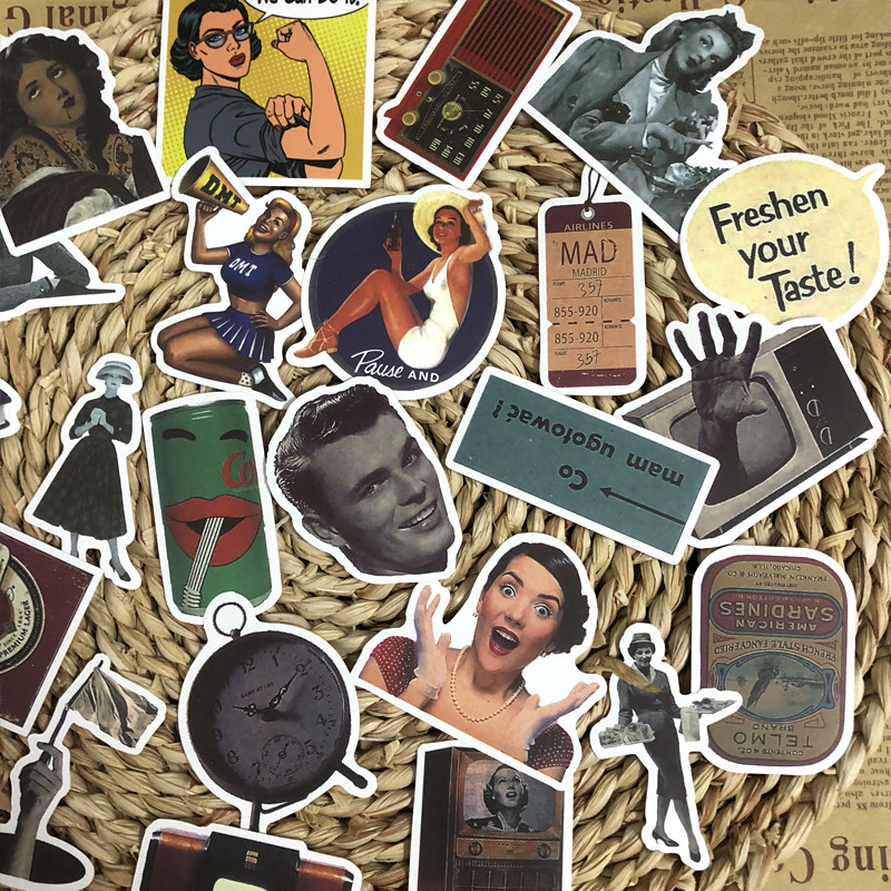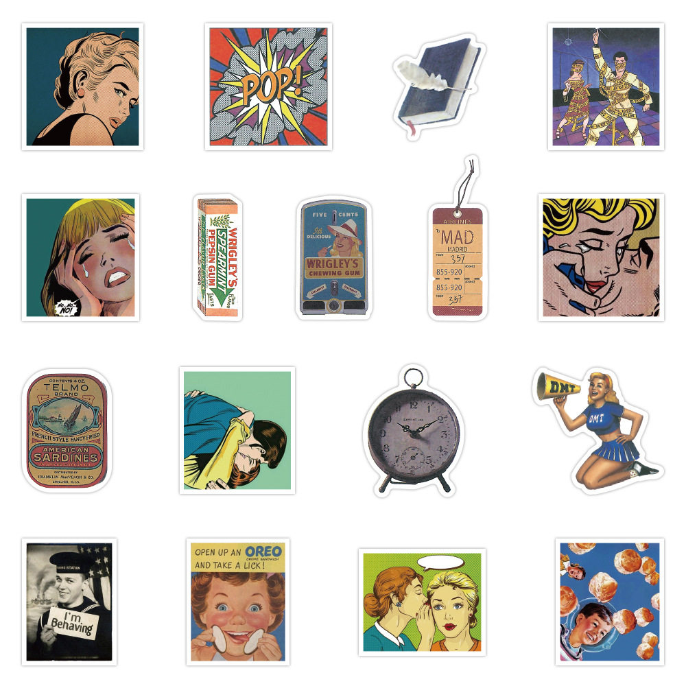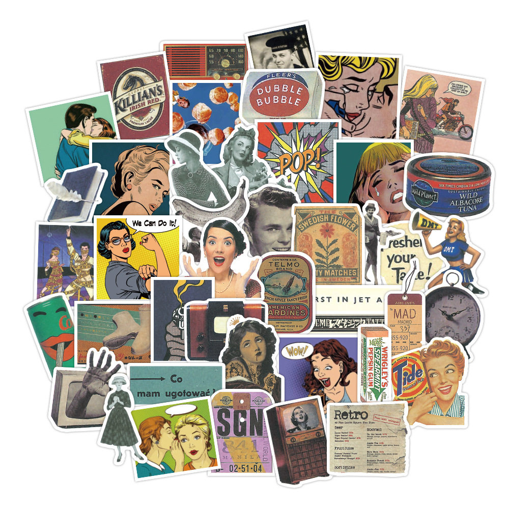 50 sheets of European and American nostalgic retro posters Popwind post Poster Computer Flat stationery Decorative Suitcase Stickers