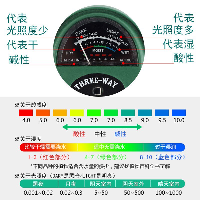 Three-in-one pointer (humidity light PH value) silver upgrade dual monitor three-in-one (humidity PH light value) yellow upgrade dual monitor three-in-one (