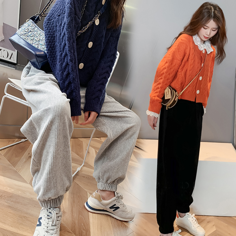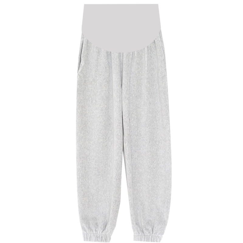 Pregnant women's underwear winter plus velvet thickening late wear corduroy pants autumn fashion beam feet gray sports pants