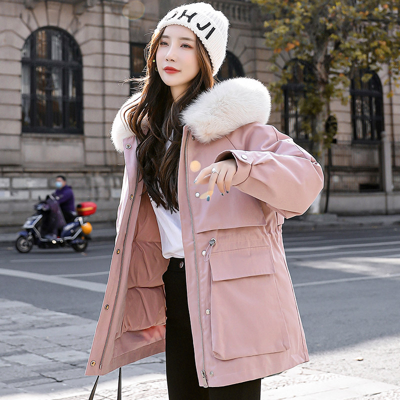 Pockets with fur collar gathers