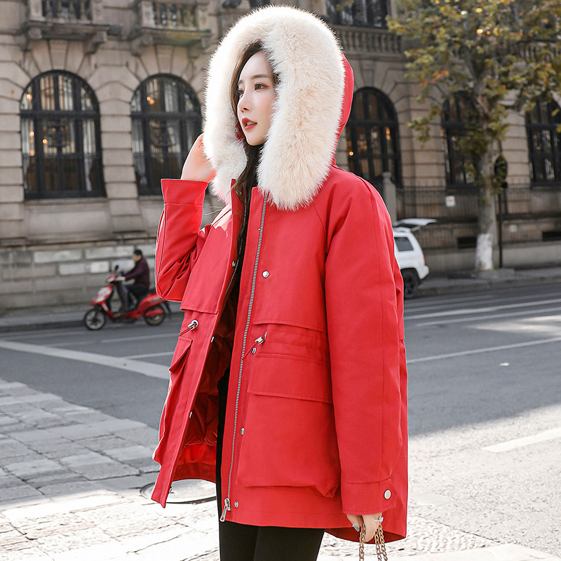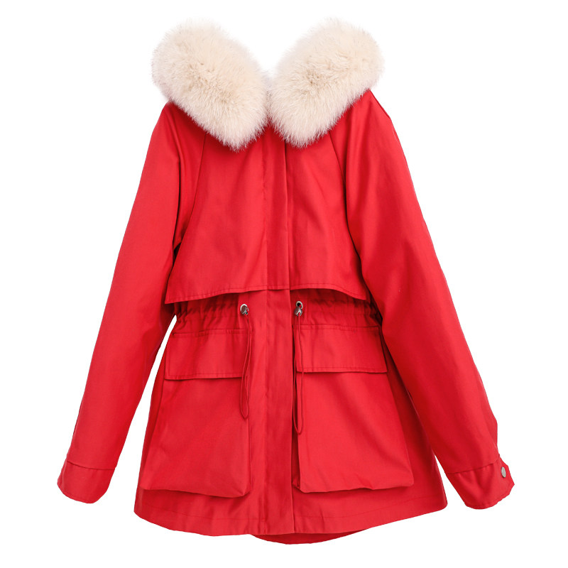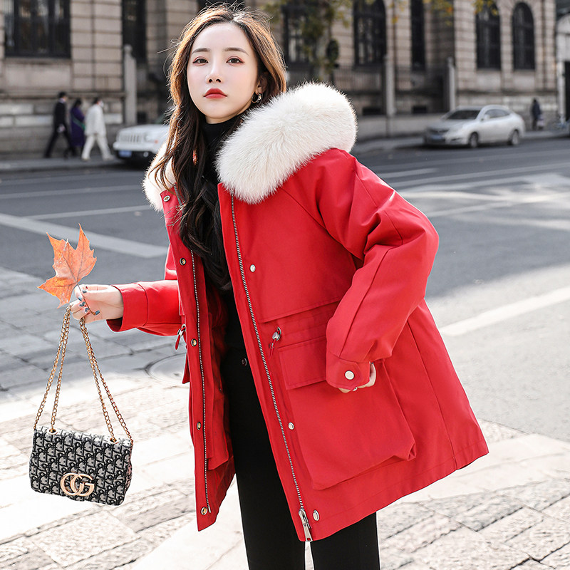 Real fur collar bride wedding red small fragrance small pie to overcome tooling down jacket women's short winter coat