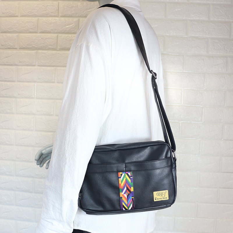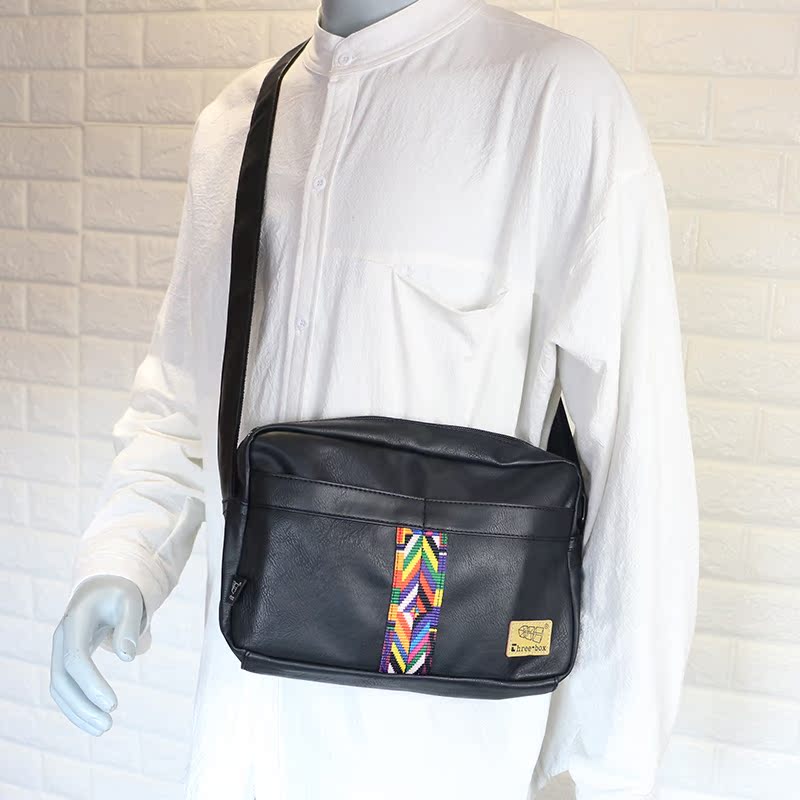 Tide brand men's messenger bag Korean fashion small satchel striped shoulder bag soft leather male and female students casual small backpack