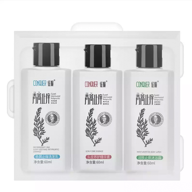 Conquer anti-dandruff and anti-itch shampoo milk artemisia anti-itch ginger hair nourishing and mite-removing shampoo conditioner travel set