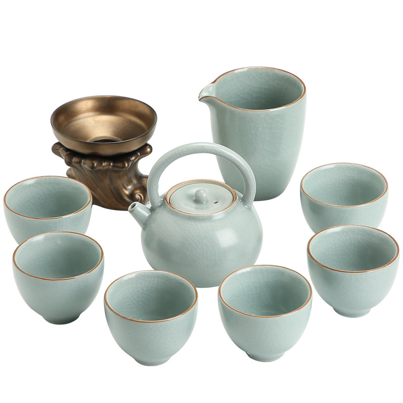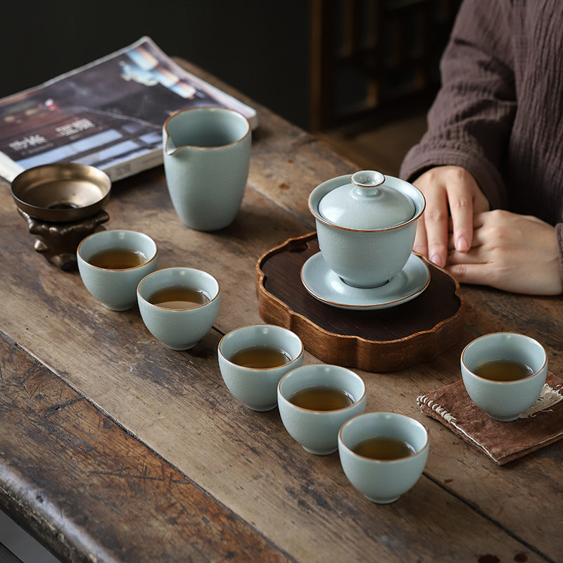 Yongjingju Tianqing Ru kiln Kung Fu tea set teacup teapot open piece household ceramic office high-end gift box set