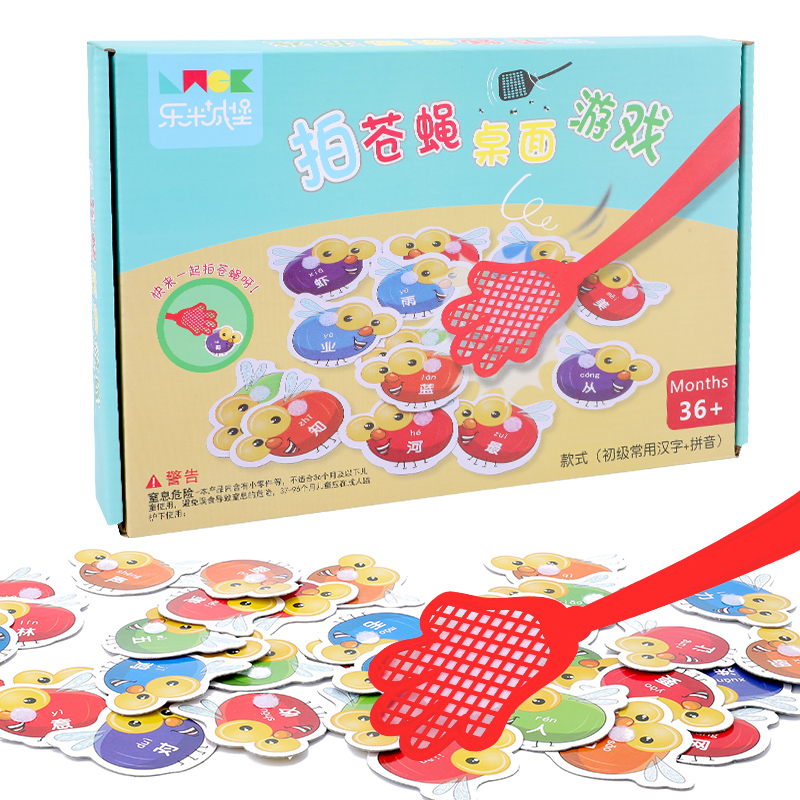 Children Swatting Fly Swatter Puzzle Parent-child Interactive Game Chinese Characters Spelling English Word Cards Concentration Training Toys
