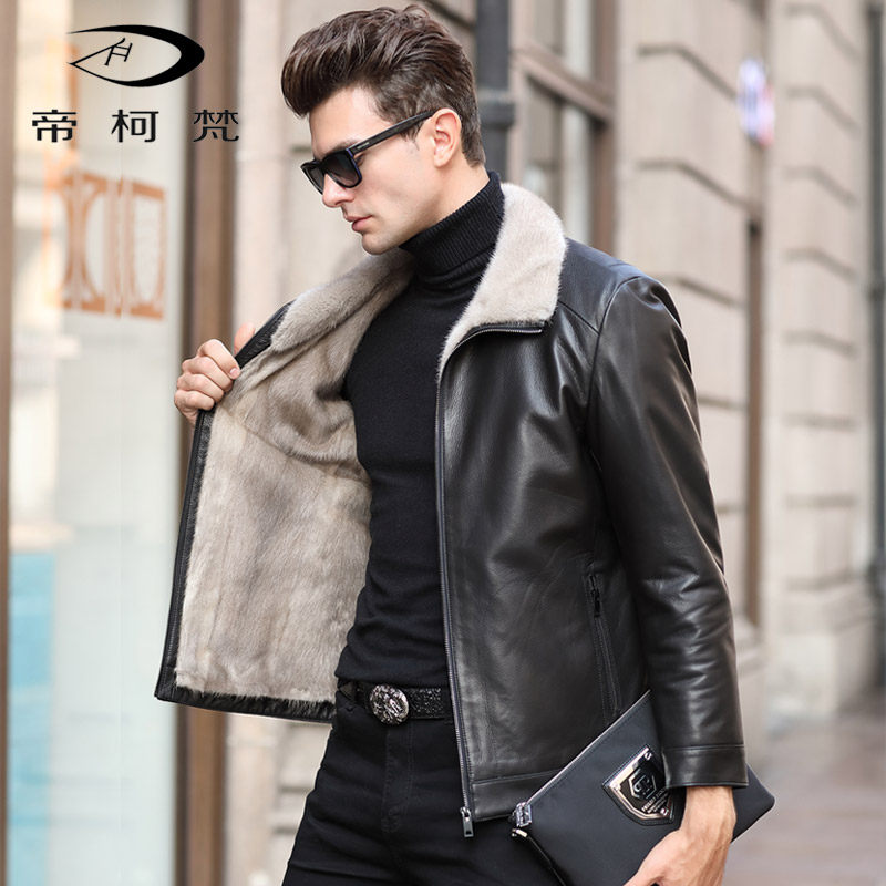 Real leather leather clothing men's mountain goat leather turnover water mink liner whole mink leather big coat fur integrated short and handsome jacket winter
