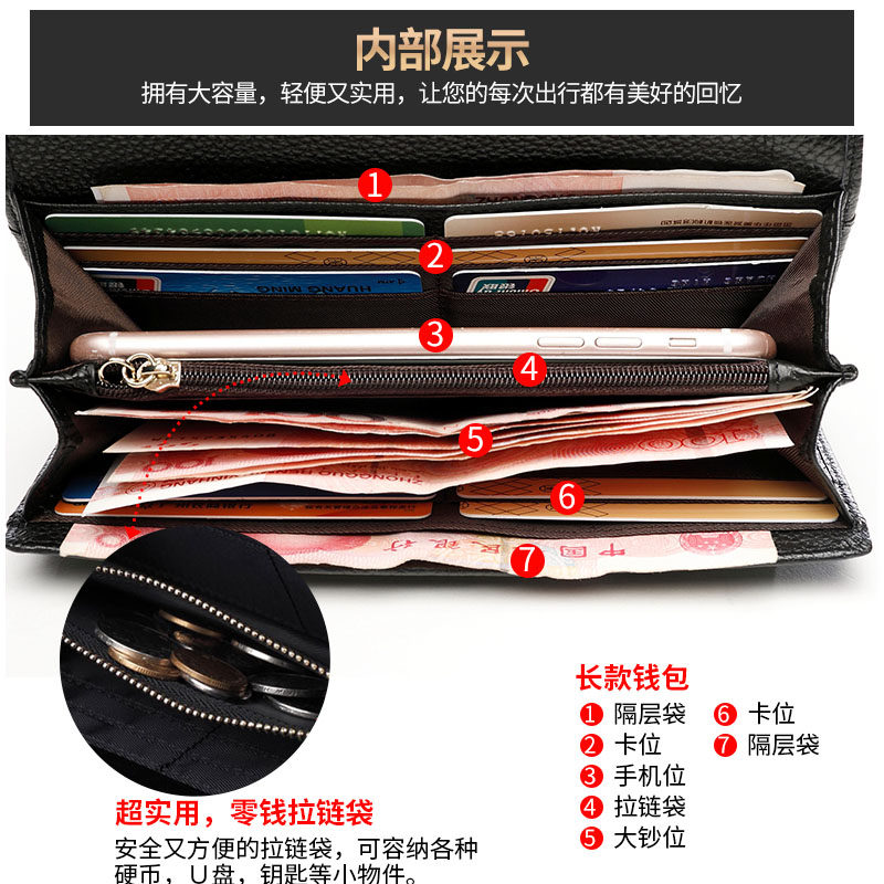 Tide Card 2022 New Lady Wallet Long Version Money Clip Genuine Leather Multifunction 100 Lapped Atmosphere Leather Wallet Hand Bag Large Capacity