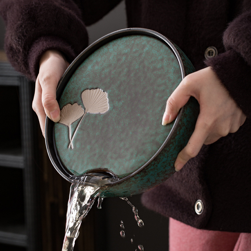 Day-style round tea tray small number tea desk handmade ceramic minima water storage dry tea tray tea bearing manufacturer direct selling