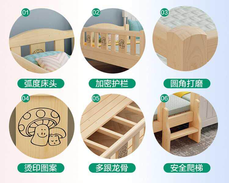 Package installation solid wood children's bed boy bed artifact girl princess cot crib widened bedside with guardrail