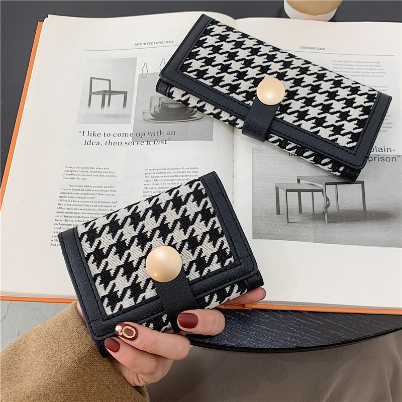 New Chidori tartan canvas small wallet women's short contrast folding coin clip multi-card slot buckle long clutch bag