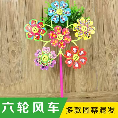 Cartoon six-wheeled windmill sequins Six-wheeled windmill upper and lower sequins windmill three-dimensional dot windmill cartoon windmill double-layer sequins sun wind car double-layer love windmill DIY painted windmill(without brush)belly turn cartoon