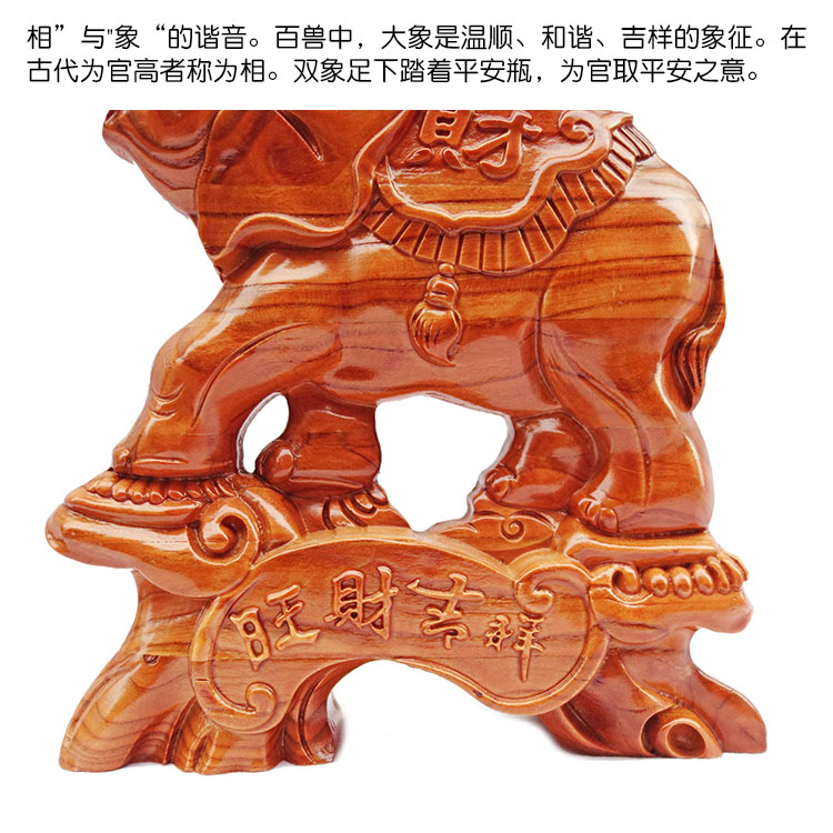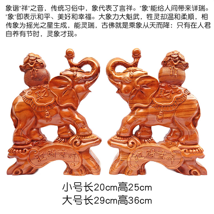 Peach wood elephant decoration lucky office table town house a pair of solid wood carving Feicheng elephant absorbent living room decorations