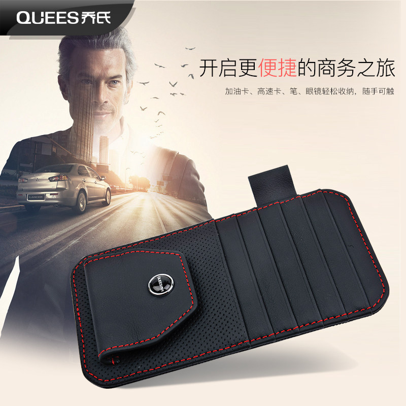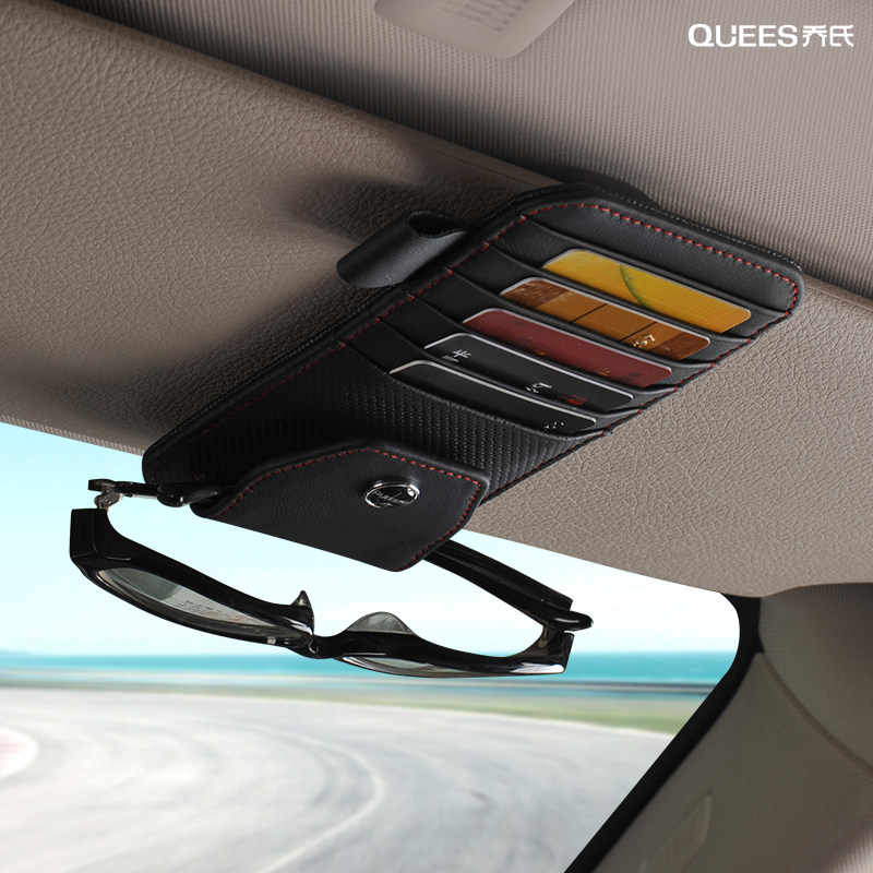 Leather car glasses case Sun visor storage multi-function car card glasses clip Ticket clip Car sunglasses case
