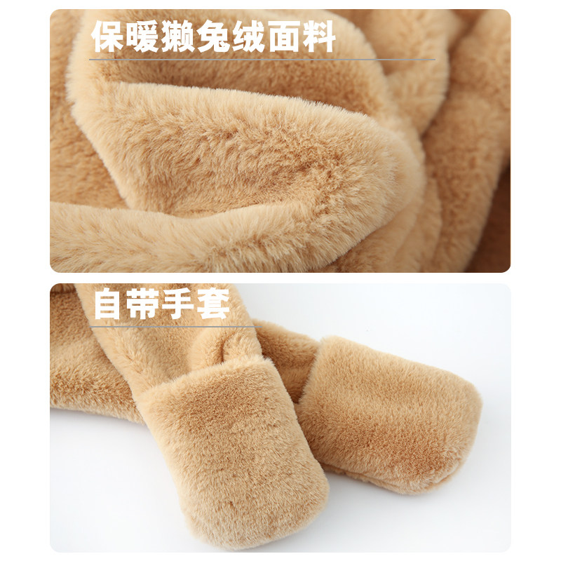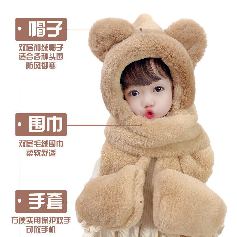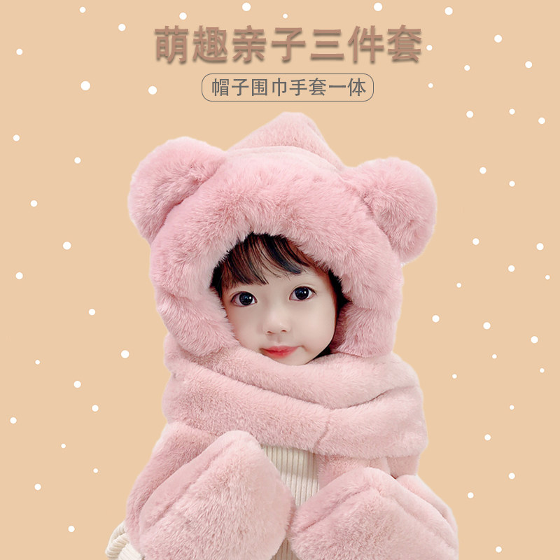Baby hat scarf gloves one autumn and winter parent-child rabbit velvet ear protector hat cute boys and girls warm bib neck