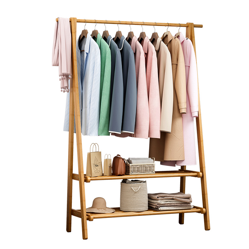 Simple wardrobe home bedroom rental children's solid wood girls large wardrobe simple modern floor-to-ceiling bamboo coat rack