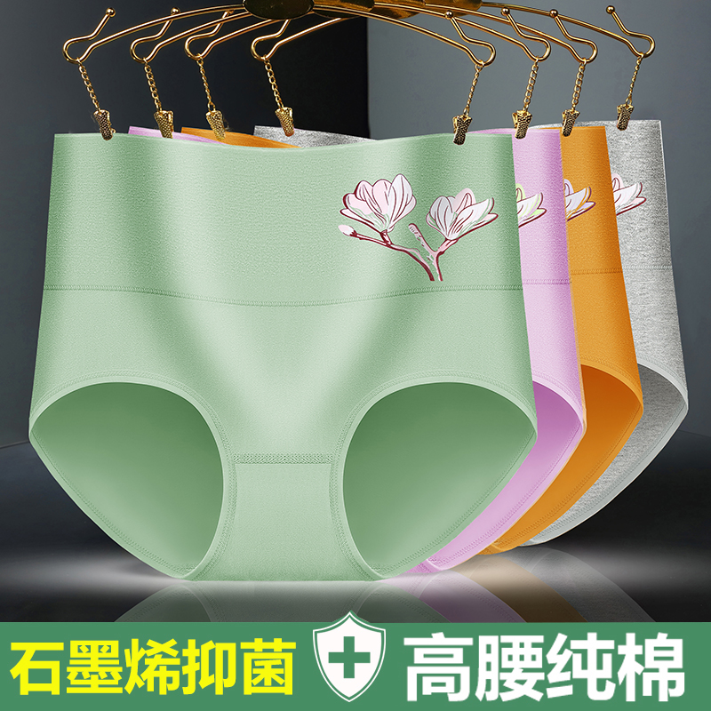 High-rise belly-cinching antibacterial crotch panties women's cotton cotton graphene print mid-rise shorts oversized ladies briefs