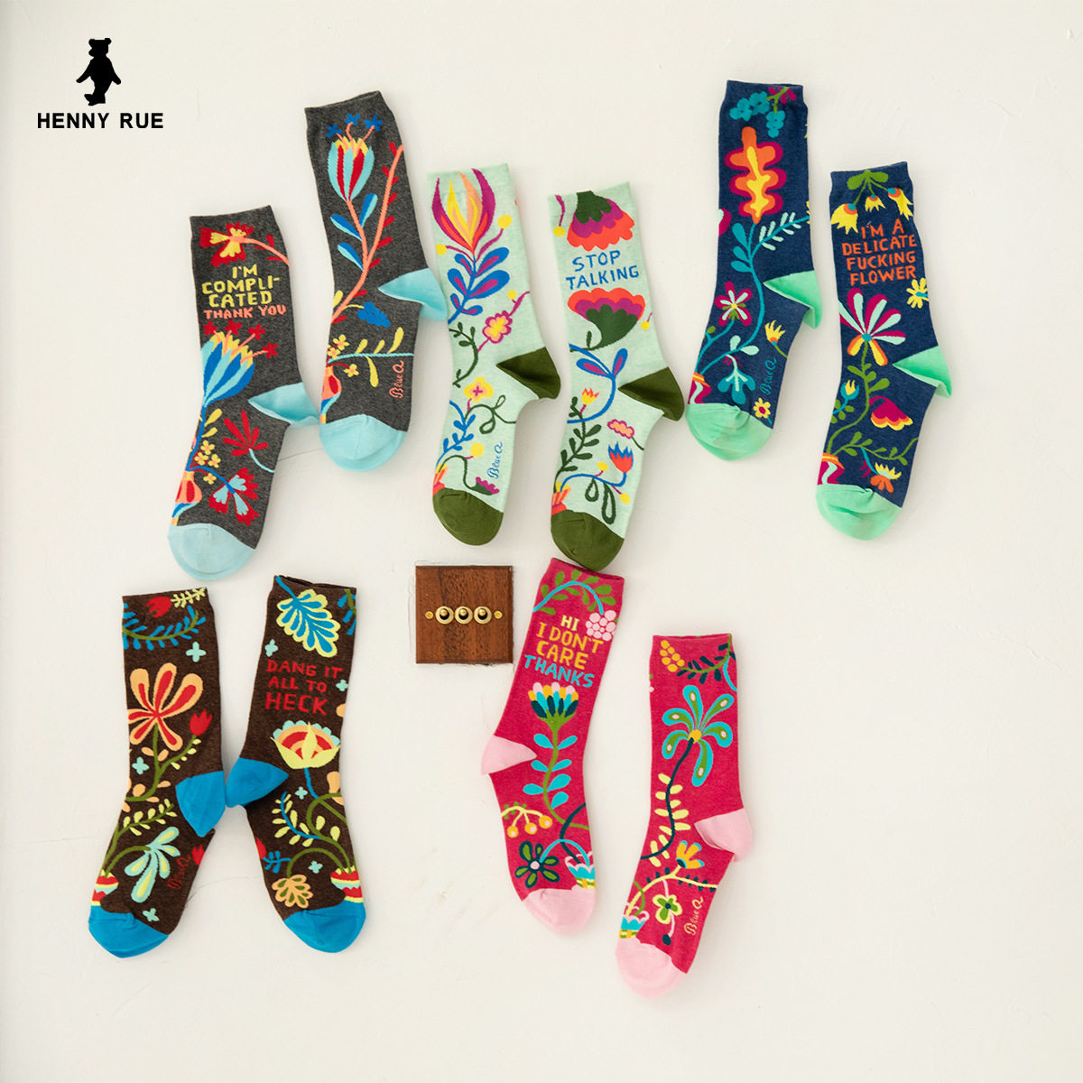 Spring New Products Jacquard women Sox Flowers Cotton Individuality In Silo Socks Fashion Oil Painting Bubble Socks 1